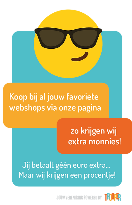 Als je via een link je shopping doet, weet de website dat je onze vereniging wilt steunen, zonder een cent extra uit te geven! Voor elke aankoop die jij dan doet, krijgen wij een extra centje die we kunnen investeren in nieuw speel/spel/knutsel materiaal.